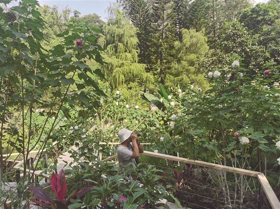 记者于上午走进木芙蓉园,只见园区里的木芙蓉花正盛开,或纯白,或渐渐变为淡粉色,花径约有10厘米,重瓣的花朵缀满枝头。临近中午,随着光照增强和温度升高,花色持续变深。“看花要趁早!很好看!”摄影爱好者张女士边举起相机边说,她听说最近木芙蓉花开了,就特地过来看看,拍下这花色一日三变的特别景观。