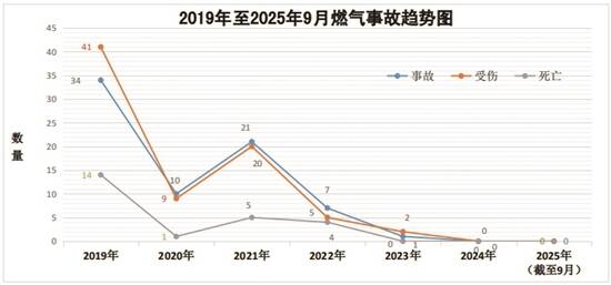 (三)燃气事故(事件)实现“双下降”。燃气事故从2019年的34宗、14人亡,下降到近两年燃气安全责任事故“零发生”。事故(事件)数量和亡人数量实现大幅度的“双下降”,燃气安全形势平稳向好。