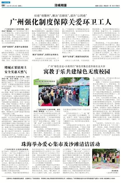 广东建设报讯 记者钟梓骥、通讯员成广聚报道:在广州市第38个环卫工人节来临之际,记者从市城市管理综合执法局获悉,广州市正通过一系列扎实举措,不断完善对环卫工人的制度性保障,着力解决其急难愁盼问题,在全社会营造尊重劳动、关爱环卫工人的浓厚氛围。
