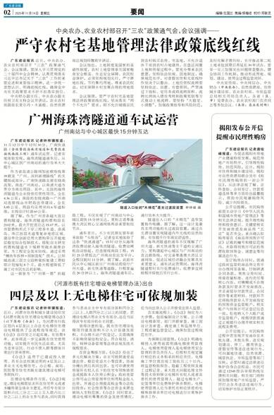 广东建设报讯 记者钟梓骥报道:近日,河源市住房和城乡建设局印发《河源市既有住宅增设电梯管理办法》(以下简称《办法》),为河源市行政区划内4层及以上合法无电梯住宅增设电梯提供了全流程指导规范。该《办法》自印发之日起实施,有效期5年。此举将进一步完善既有住宅使用功能,切实提升市民生活品质,尤其为老年居民、行动不便人群等群体日常出行带来便利。