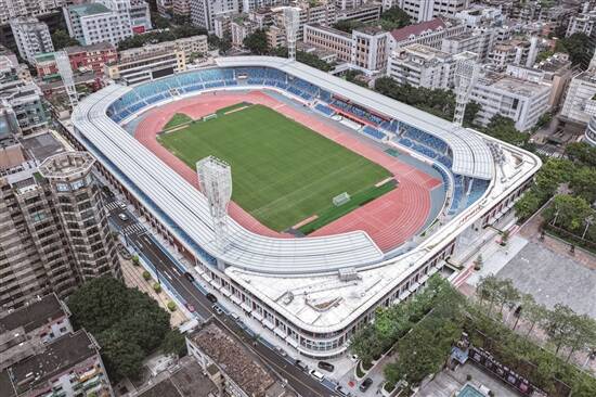 “因地制宜”是存量改造的关键,不同城市的场馆改造都兼顾了历史传承与低碳需求。面对拥有近40年历史的广州天河体育中心体育场,改造团队摒弃“推倒重建”思路,采用“被动优先+主动优化”技术路径。被誉为“岭南体育文化活化石”的广东省人民体育场,完整保留主席台、看台等历史风貌,仅通过立面翻新与设备升级实现绿色转型。清远则秉持“节约、高效”的办赛原则,对场馆外立面进行翻新,既展现城市特色与活力,又降低建材消耗。