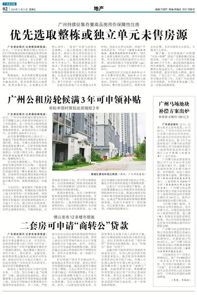 广东建设报讯 记者唐培峰报道:近日,广州市住房和城乡建设局发布关于调整完善公共租赁住房轮候有关工作的通知,进一步优化公租房轮候管理,降低补贴申领门槛,同时明确资格审核要求。新规自印发之日起施行,有效期至2029年3月3日。