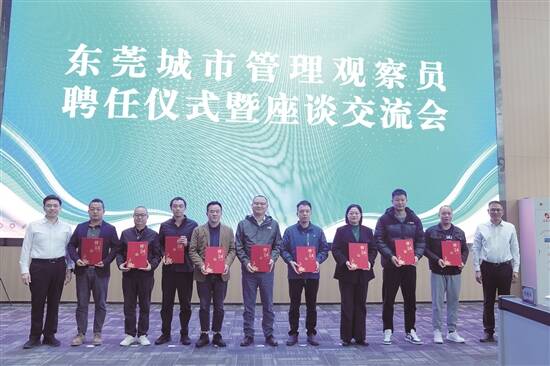 活动现场,东莞市城管局为首批20名市级城市管理观察员颁发聘书。韩暖渠寄望各位观察员当好“人民立场”的坚定坚守者、“问题导向”的敏锐发现者、“桥梁纽带”的积极沟通者、“城市形象”的自觉维护者。