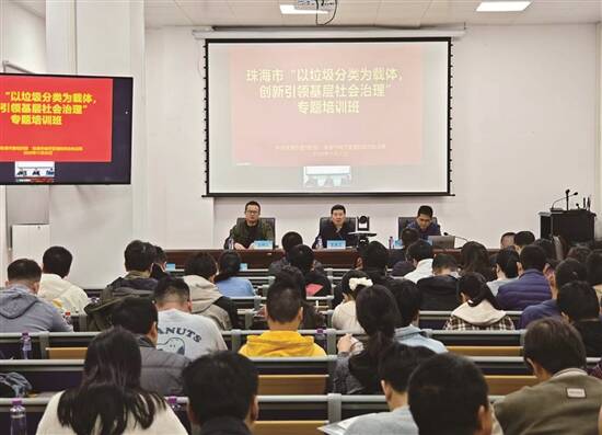 珠海市城市管理和综合执法局党组成员、副局长王兆江作开班动员。他围绕巩固深化垃圾分类成效、提升基层治理效能,提出四点工作要求:一是推动多元共治,通过压实物业责任、联动社会组织、创新积分激励等机制;二是坚持典型引路,细化实施方案,打造多场景示范样板,加强经验交流推广;三是扎实做好小区“四件事”,即落实三级动态监管、优化定时定点投放、杜绝混装混运、完善可回收物回收体系;四是突出党建引领,充分发挥基层党组织战斗堡垒和党员先锋模范作用,将组织优势切实转化为基层治理效能。