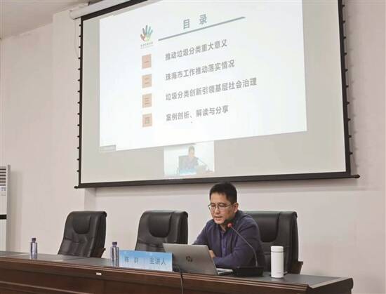 培训班上,广东省建筑科学研究院建筑环境研究中心、广东省生活垃圾分类技术研究中心主任、正高级工程师陈群进行专题授课。他从垃圾分类的战略意义切入,精准分析珠海生活垃圾分类工作现状,结合典型案例系统解读了以垃圾分类为抓手创新基层治理、实现共建共治共享的实践路径,为珠海市下一步推动垃圾分类工作提供了专业、实用的指导。