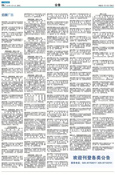遗失声明 广州市禺广五金有限公司遗失营业执照正、副本,统一社会信用代码:914401015583721965,注册号440126000110803,现声明作废。