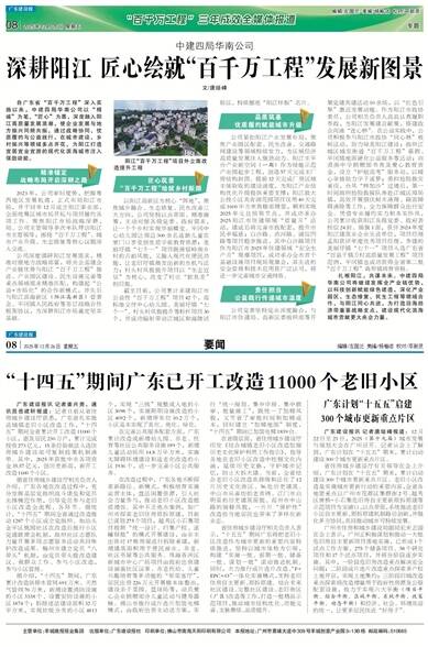 截至目前,公司累计承建阳江市公益性“百千万工程”项目42个,高标准交付中心幼儿园、美丽圩镇“七个一”、村头村风貌提升等标杆项目30个,并成功辐射带动江城区和海陵试验区,持续擦亮“阳江样板”名片。