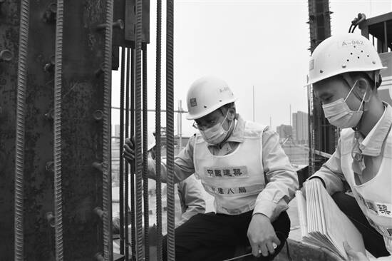 邹翔(左)在施工现场 |
