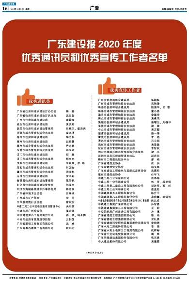 广东建设报 2021年2月8日 星期一 美编/杨榆洁 校对/邓新灵 主管单位:羊城晚报报业集团 出版单位:广东建设报社 印刷单位:佛