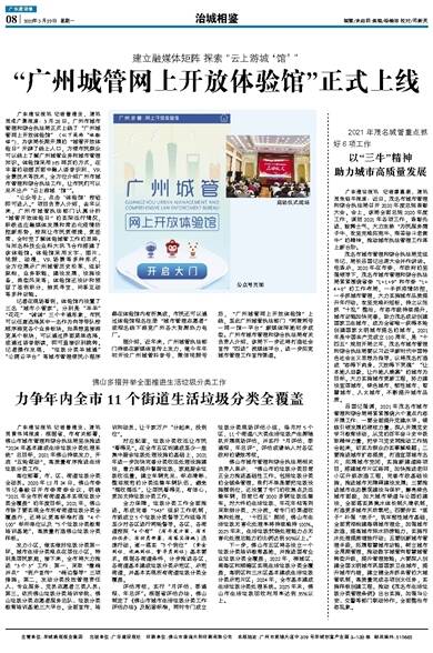 广东建设报讯 记者誉建业、通讯员成广聚报道:3月26日,广州市城市管理和综合执法局正式上线了“广州城管网上开放体验馆”(以下简称“体验馆”),为该局长期开展的“城管开放体验日”开辟了线上入口