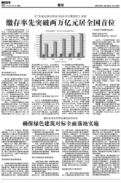 广东建设报讯 记者刘洁报道:4月23日,广东省住房和城乡建设厅、广东省财政厅和中国人民银行广州分行联合发布《广东省住房公积金2020年年度报告》(以下简称《报告》)及解读。《报告》显示,截至20