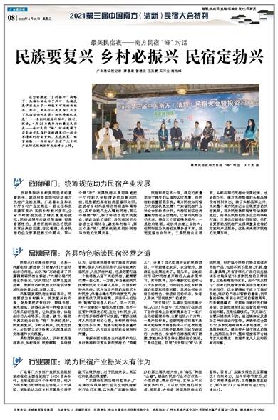 广东建设报 2021年4月28日 星期三 2021第三届中国南方(清新)民宿大会特刊 编辑/朱启同 美编/杨榆洁 校对/邓新灵 主管单位:羊城晚报报