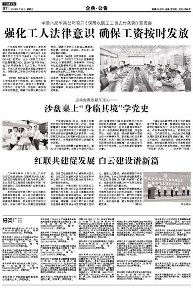 广东建设报讯 记者誉建业、通讯员姚瑞哲报道: 5月25日,中建八局华南公司在南海区体育中心项目召开《保障农民工工资支付条例》(以下简称《条例》)宣贯会,出台《农民工工资支付监督管理办法》,坚决打