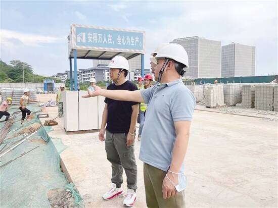 广州开发区党工委委员、管委会总规划师陈智勇(前左二)带队检查在建工地的疫情防控、安全生产及三防工作开展情况 |