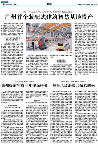 广东建设报讯 记者廖惠康、通讯员吴海莹报道:7月13日,广州第一个全产业链装配式建筑生产基地——“中建·智造”基地在广州花都区正式落地投产。该智造基地年产装配式建筑预制构件15万立方米,占广州全