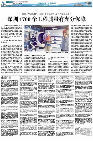 广东建设报讯 记者唐培峰报道:今年9月,以“深入实施质量提升行动 大力推进质量强国建设”为主题的第44个全国质量月如期而至。今年以来,深圳大力弘扬质量精神,践行高质量发展要求,努力打造“深圳质量