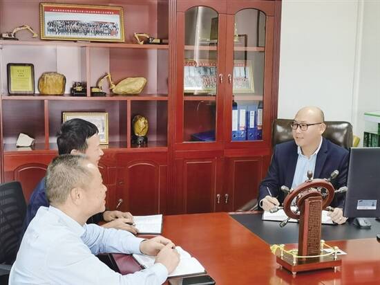 广州集通仓码有限公司总经理周键锟(右)在接受专访 廖惠康 摄 |