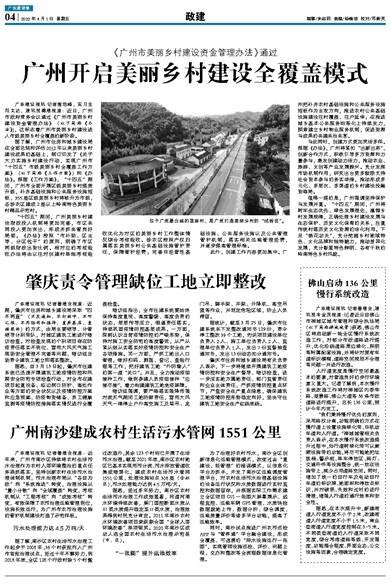 广州南沙建成农村生活污水管网1551公里