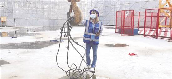 西安电子科技大学广州研究院项目信号工在进行塔吊吊具安全检查 誉建业 摄 |