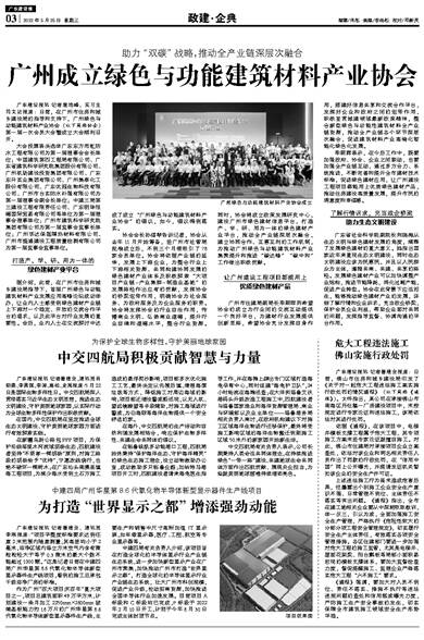 广东建设报讯 记者唐培峰、实习生符文达报道:日前,在广州市住房和城乡建设局的指导和支持下,广州绿色与功能建筑材料产业协会(以下简称协会)第一届一次会员大会暨成立大会顺利召开。