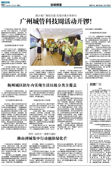 广东建设报讯 记者陈小珊,通讯员成广聚、刘志飞报道:近日,广州市城市管理和综合执法局举办“走进科技,你我同行”——2022广州城管科技开放日增城环保科教基地参观活动,邀请30名广