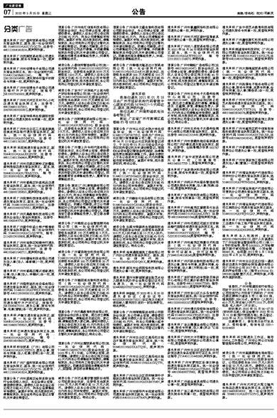 遗失声明 广州广盛和贸易有限公司遗失营业执照正、副本,统一社会信用代码:91440101MA5CY9GC7R,注册号:440111004341834,现声明作废。 遗失声明 广州岚