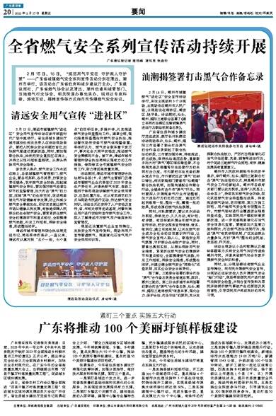 2月15日、16日,“规范用气平安在 守护家人守护爱”——广东省城镇燃气安全系列宣传活动分别在清远、潮州市举行,该活动由广东省住房和城乡建设厅主办,广东建设报社,广东省燃气协会