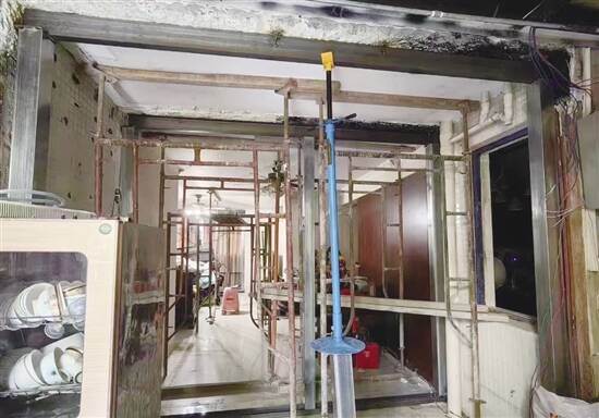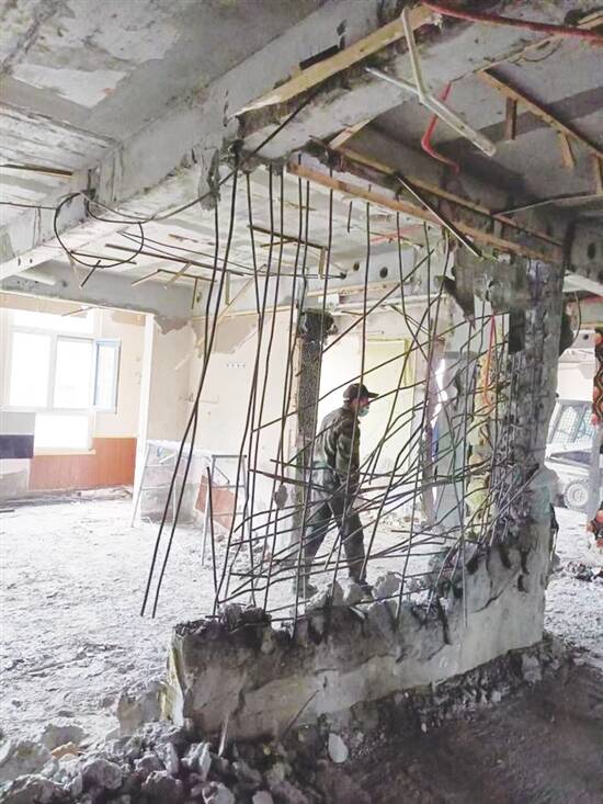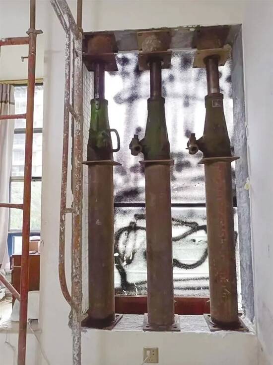 广州市白云区事发小区拆除承重墙后的临时加固 |