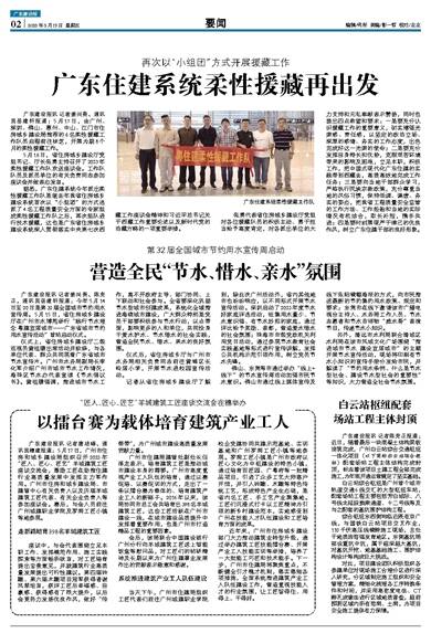 广东建设报讯 记者姜兴贵、陈克正,通讯员岳建轩报道:今年5月14日至20日是第32届全国城市节约用水宣传周。5月15日,省住房城乡建设厅在广州市水博苑举行“践行节水理念 粤建宜居