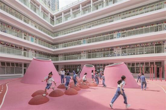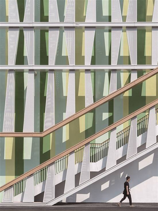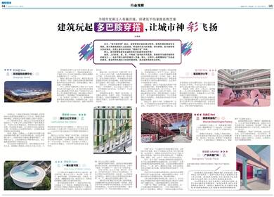 文/陈欢 近日,“多巴胺穿搭”走红,该穿搭理念旨在通过明亮、高饱和度的服装色彩搭配,最大限度地调动大众的感官,营造快乐活力的氛围。研究表明,多巴胺穿搭火热的背后,实质上是色彩带来的“情绪疗愈”作用。 那么,多巴胺穿搭是否也遍布在我们的城市生活中呢? 诚然,人们的衣、食、住、行构成了城市的方方面面,而建筑作为城市独特性的象征之一,也在不断为城市发展注入灵魂。那么,让我们一起看看来自广东各地的建筑,是如何用充满活力的多巴胺穿搭,装点城市缤纷色彩的吧。 时尚蓝 Blue 深圳国际会展中心 Shenzhen World 深圳国际会展中心作为具有划时代意义的“全球第一大会展中心”,其独特的建筑形态、丰富的立体人车分流交通网络以及绿色智慧的运营模式吸引了一众目光。 建筑占地约160万平方米,展厅采用长条形“鱼骨式”布局。蓝紫色的海浪形屋面和蜿蜒其中的彩色丝带花纹,具象地诠释出“海上丝路”的深厚寓意。 另外,深圳市花簕杜鹃与“海岸卫士”红树林也被巧妙地融入设计,成为独具特色的建筑语言:簕杜鹃原产巴西,暗合了深圳的开放与包容;而勾勒展厅屋面造型、描绘展馆立面细节的红树枝干,同样撑起了深圳的城市精神。 在“鱼骨式”的中脊下,是一条用城市景观带制作的城市绿肺,连接城市公园。在这里,绿茵草木贯穿空间的始终,建筑与自然和谐共生。 展馆内部,设计师采用“化整为零”的方式,从设计上将大尺度、大构件的建筑转化成小尺度、人性化的体验;展馆外侧,带有穿孔、层次分明的立面设计、中央廊道盒子边缘的圆弧形处理以及简洁清晰、又富有地方特色的交通指向,都大大提升了观众逛展的体验。 短短3年,深圳国际会展中心的建成不仅彰显了“深圳速度”,也让全国人民看到了这一世界级国际交流平台在“世界窗口”开出的新时代之花。 深圳国际会展中心“释放”的多巴胺,是蓝紫色的时尚,是现代、科技、可持续理念的多方融合。这座承载着新时代“海上丝路”梦想的世界窗口,也将牵引着深圳走向世界、驶向未来。 清新绿 Green 莲花山公交总站 Lianhuashan Bus Station 这座处在一片绿色环境包围之中的建筑,是深圳2018年改造完成的新莲花山公交总站。墨绿与清新绿的搭配,呈现的是大自然与建筑之间的不谋而合。 为了保持原有形态,莲花山公交总站的改造将建筑的三个主要立面以及屋顶增加了新的幕墙表皮。开放和立体的幕墙表皮,使得绿色的内墙若隐若现;四层新的幕墙每一层均靠原有结构出挑钢梁支撑,并且每隔3.6米设置竖向钢柱,让加建的幕墙形成稳定的结构框架。 葱绿、翠绿、苹果绿……丰富的条形图案与周边的绿树仿佛打翻了大自然的调色盘。在白色的幕墙立面下,内侧的绿色外墙透过幕墙更增添了一份清新与活力。立体的梯形体采用明亮的金色,也让建筑整体的绿色外观变得灵动。 竖向连续的变截面梯形体、新的幕墙表皮形成的光影、新幕墙与原建筑之间的室外围合空间、与周边绿色环境相呼应的内墙颜色……莲花山公交总站的改造几乎完美实现了内部空间与外立面形式统一,人在站内行走也能透过开口观看外部的绿树与城市。 莲花山公交总站“释放”的多巴胺,是绿色的清新,是旧建筑和新设计的碰撞,亦是大自然与建筑色彩的相得益彰。这座屹立在城市一隅的公交总站,不仅以亮丽、时尚闻名,也将着力于实现人、车与自然的完美融合,为市民带来更加舒适的交通体验。 静谧青 Cyan 一滴水图书馆 One Drop of Water Library 位于惠州市平海镇双月湾中央公园内的一滴水图书馆,矗立在山顶上,被丘陵、谷地、巨石、海景环绕着。这样独特的选址,是挑战,也是优势。俯瞰整座图书馆,极简的白与一抹静谧的青展现出建筑与环境的和谐共生。 图书馆的造型来源于“一座白色的图书馆,它在池水之下”的理念。面朝蔚蓝色的大海,几何化的设计展现出其极具诗意的张力——建筑主体部分平面形状为圆形,直线是室外走廊和长墙,将人从山顶引入建筑。 建筑屋顶剖面呈碗形,阅读区的透明玻璃使屋顶具有悬浮感。碗状的屋顶内是水池,它赋予了建筑一种戏剧性——一座位于水下的图书馆。 水池与景观,是人与大海、碧空的一次对话。虽然屋顶水池多少带有点乌托邦的成分,但设计师依然希望给使用者一些惊喜。从山顶的特定位置望去,视线可以掠过水面看到远处的海平面。水、天、海在此时此地得以融为一体。 一滴水图书馆“释放”的多巴胺,是青的静谧,是喧嚣的城市生活里属于阅读的一丝惬意。读者在其中享受美景带来的视觉盛宴,亦享受知识带来的精神富足。在这样的多巴胺穿搭里,一滴水图书馆带来了不一样的视觉传播和身体体验。 活力粉 Pink 福田新沙小学 Futian Xinsha Primary School 在探索高密度城市中的新型小学校园的路上,深圳福田新沙小学开了个好头。据设计师表示,设计过程中,让孩子们能够欢笑着活动的景象是他们的一大目标。因此,满足孩子们在日常生活中的快乐活动,并提高他们对课堂学习的专注度和积极性,这是新沙小学最初的设计理念。 因地制宜,新沙小学通过地形高差来代替校园围墙的功能,用裙楼覆盖整个场地,将学生活动的场地抬高到二层大平台上。教学楼通过S型布局,围合出南北两个庭院,北院朝向操场围合校园,南院朝向城市十字路口打开。穿行在教学楼中