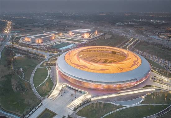 屋顶为“太阳神鸟”图腾的东安湖体育公园主体育场 |