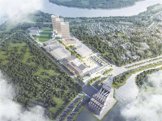 广州美术学院佛山校区(一期)建设工程项目俯瞰效果图 |