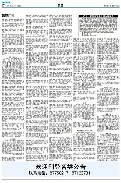 遗失声明 广州市卓淘网络科技有限公司遗失公章一枚,现声明作废。 遗失声明 广州澳龙机械配件有限公司遗失财务专用章、法人(张怡龙)私章各一枚,现声明作废。 遗失声明