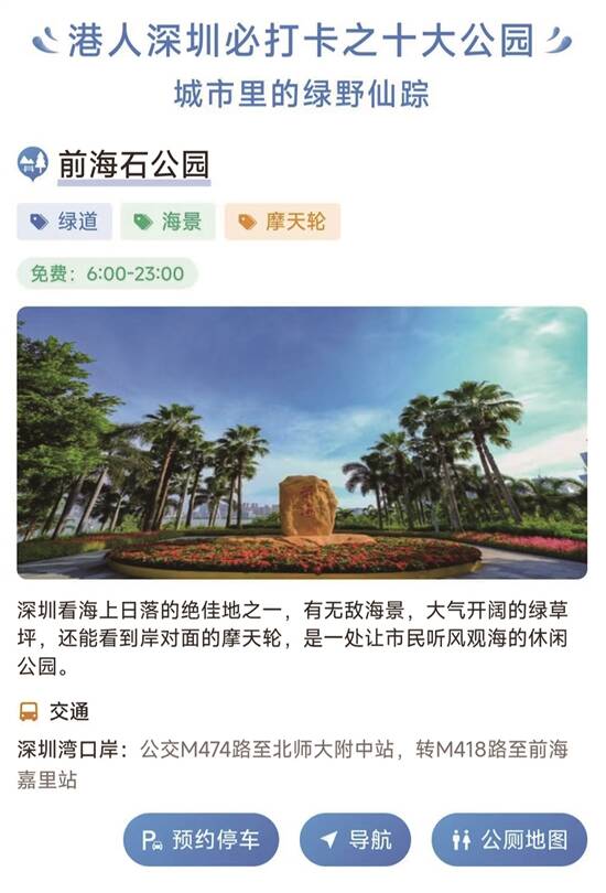 “美丽深圳”公众号中的“港人户外游玩攻略”栏目 |