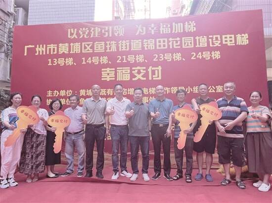 广东建设报讯 记者陈克正、通讯员朱琳报道:7月1日,广州黄埔鱼珠街道锦田花园24号楼前人头攒动、热闹非凡,当天这里有5个梯口加装电梯工程圆满竣工并交付使用。黄埔区住建局电梯办、鱼珠街道、居民代表以及施工单位代表到场共同见证,一起分享“一键直达”的幸福。 锦田花园是鱼珠街道首个既有住宅增设电梯成片连片试点小区。仪式上,鱼珠街道党工委副书记雷黎明致辞祝贺。他表示,鱼珠街道将以此为契机,持续推进电梯加装工程,不断优化“党建引领 幸福加梯”新模式。区住建局四级调研员曾亮球表示,鱼珠街道及时总结典型个案的成功经验,起到宣传示范效应,为其他楼宇的加梯工作提供了积极借鉴。 居民代表分别给区住建局电梯办、鱼珠街道、瓦壶岗社区送上锦旗,感谢各部门在加装电梯过程中给予的指导和帮助。随后,众多居民前来试乘电梯,现场体验无障碍垂直交通的便利。 截至目前,鱼珠街道交付使用电梯55台,939大院8个梯口成片连片联审方案于6月20日公示、鱼木小区56个梯口成片连片联审方案将于7月公示。下一步,鱼珠街将继续秉承“提前介入,充分协商”的理念,推行“成片加梯”的一体化改造,让更多居民群众享受加装电梯的政策红利。