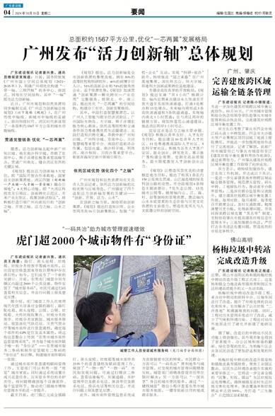 广东建设报讯 记者姜兴贵、通讯员王海豪:路灯、街头座椅、垃圾箱、垃圾分类投放亭等城市部件,以往因定位排查困难导致后期维护存在滞后性;如今,它们成为了一个新的突破