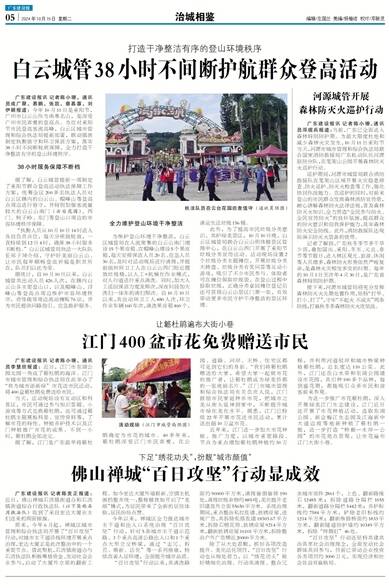 广东建设报讯 记者陈小珊,通讯员成广聚、易鹏、张凯、蔡慕蓉、刘伊颖报道:今年10月11日是重阳节,广州市白云山作为南粤名山,是深受广州市民喜爱的登高点。为应对重