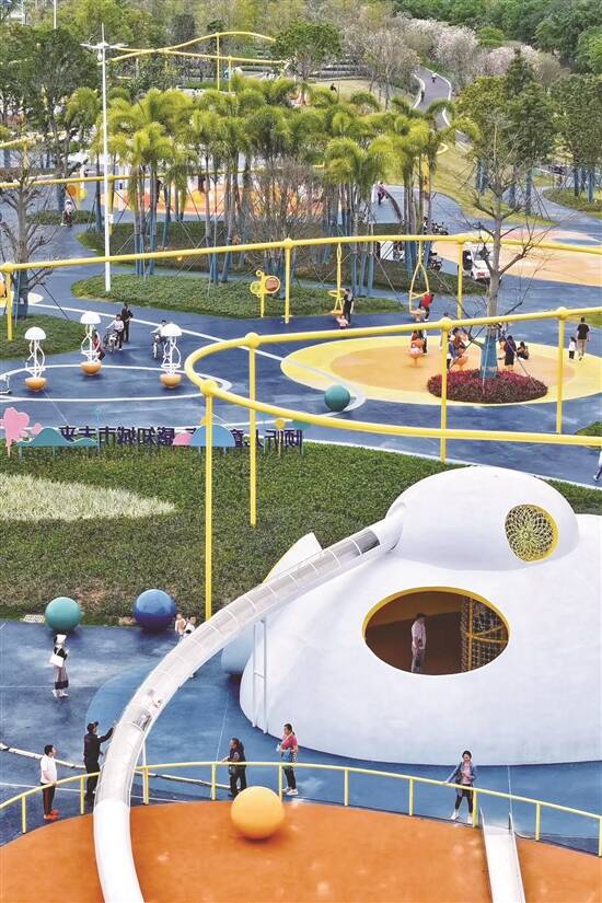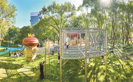 广东建设报记者 赵文霞 当秋风轻拂,树叶飘落,秋天的气息开始在城市中弥漫。在充满诗意的季节里,城市儿童公园正是孩子们秋日之旅的梦想天地。这里有精心设计的游乐设施,能够满足不同年龄段孩子的需求,还有宽敞的绿地,让孩子们自由地奔跑、追逐。 城市建设能否为孩子提供更多的公共空间,关系到一座城市的持续发展能力。近日,城市儿童友好空间建设可复制经验清单(第一批)正式印发。记者结合此前发布的广东省城市建设领域可复制推广典型案例(第二批——城市儿童友好空间建设),整理了国内四大类儿童友好公园,让我们一起探访那些既好看又好玩的趣味乐园吧。 A IP主题 营造独特氛围 鲜明的主题能够迅速吸引儿童的注意力,激发他们的兴趣和好奇心。高品质的主题类儿童公园,其主题贯穿于公园的各个角落,让公园成为儿童的理想乐园,甚至成为城市的标志性景点。 城市寻宝 开启熊猫之旅 四川雅安市熊猫绿岛公园 在四川省雅安市新老城之间的水中坝岛上,有一个以熊猫为主题的公园——熊猫绿岛公园。公园整体为“一轴、一环、一带、六片区”的空间结构,包括艺术中心、亲子中心、熊猫雕塑、滑梯蹦床、轮滑场地等。 其中,占地约2.3公顷的熊猫主题亲子乐园,正是专门为儿童精心设计的、免费开放的户外儿童活动场地。雅安是大熊猫的故乡,因此熊猫主题亲子乐园从公园标志性构筑物到地面铺装均结合熊猫元素进行设计。乐园中央的熊猫塔格外吸睛,该塔是集城市地标、观光和儿童游乐为一体的综合性功能塔,塔高20余米,塔身分四层,每层设旋转滑梯,与塔身呈环抱状。 除了熊猫外,乐园还结合白臀鹿、金丝猴等当地珍贵的动物资源塑造活动设施,以抽象化的设计语言,提炼动物标志性形态,并利用动物形态或习性特点开展游乐活动,让小朋友们在玩耍的过程中认识更多的特色生物。 在游乐设施之外,熊猫绿岛公园以雅安丰富多样的自然生态环境为灵感,提炼竹林、森林、水潭、丘陵、山峰、河流6种自然场景特征为设计语言,呈现不同场景和活动空间。 作为雅安地震灾后重建的重点工程之一,免费开放的熊猫绿岛公园,从本质上体现了“城市为人民而建”的公益性。同时也突出了雅安“熊猫家园”的文化底蕴,为城市形象宣传起到了积极作用。 城市探险 开启松鼠之旅 浙江温州市半塘园松鼠探险园 随处可见的小松鼠可爱IP、360°全方位体验露营的拾光乐园……2023年底,浙江省温州市瓯海区的半塘园松鼠探险园正式开园。据了解,松鼠探险园为首批国家儿童友好中央资金补助项目之一,在原半塘公园的基础上加以局部适儿化改造,改造面积约1万平方米。 松鼠探险园以“松鼠”作为乐园的主题,将松鼠的生活环境及食物习性作为元素置入,并根据不同年龄段儿童的兴趣特点,塑造了银杏拾光隧道、奇幻森林乐园、彩虹广场、自然探险乐园、休憩乐园、拾光露营广场等六大场景,植入游乐、科普、休憩功能,纳入适儿化引导标识、图书漂流站、家长休憩区等配套设施。 其中,奇幻森林乐园以自然元素为主题的无动力游乐设备,代替乏味的金属或塑料材质的设施,其场地设备由生态木等天然材质组合而成,打造了开放式的、与周围自然景物契合的户外游乐场。 B 寓教于乐 领略文化魅力 文化润童心,文化类城市儿童公园奏响寓教于乐新乐章。当孩子们踏入这独特的公园,仿佛进入了一个奇妙的文化世界,在游玩的过程中,不经意间与文化相遇,开启一场充满惊喜的探索之旅。 薪火相传 开启红色之旅 重庆市渝中区红岩公园 地形条件复杂,上下最高落差100余米……在重庆市渝中区,有这样一个集红岩文化、休闲、娱乐、健身为主的多功能的综合性山体公园——红岩公园。 重庆市渝中区从“一米高度”出发,利用公园漏斗型的地形地势,将沟谷平坦区域建设为5000平方米的儿童乐园和阳光草坪,设置10余种儿童游乐设施,增加陪护休闲座椅,配套儿童马桶、洗手台等设施,为儿童提供安全舒适的游乐空间。 除了大草坪和游乐设施,红岩公园的特别之处在于其悠久深厚的历史底蕴。公园采用3000米登山步道和观景平台的设计,将周边的红岩村、红色革命纪念馆、新华日报总馆旧址等红色文化资源串联起来,让儿童在游乐中浸润红色文化,传承红色基因。 修葺如旧的新华日报总馆旧址坐落在山谷之中,由五栋竹木、土木结构的楼房组成,所有房屋的基调颜色为灰色,传递出历史厚重感。旧址对编辑部、排字房、记者办公室、铸字房等场景进行了复原。 在旧址的正前方,建造于20世纪70年代的火车桥梁与轨道9号线并肩遥望,是悠悠岁月的见证,也是一部活着的交通史籍,让孩子们直观地认识到重庆的交通发展变化,感受历史与现代的交融。 松湖样本 开启科学之旅 广东东莞市松山湖儿童友好中子乐园 在科技的浩瀚星空中,“国之重器”中国散裂中子源闪耀着智慧与创新的光芒。而在充满童真的世界里,儿童乐园是孩子们梦想起航的地方。 如今,这两个看似截然不同的领域,以一种奇妙的方式结合在一起。松山湖儿童友好中子乐园将散裂中子源作为场地主题灵感来源,将场地与在地科学巧妙融合,打造了一座面积约3.4万平方米的儿童自然科普主题乐园。 作为国家“十二五”期间重点建设的十二大科学装置之首,散裂中子源的原理较为复杂。为提供童趣简单