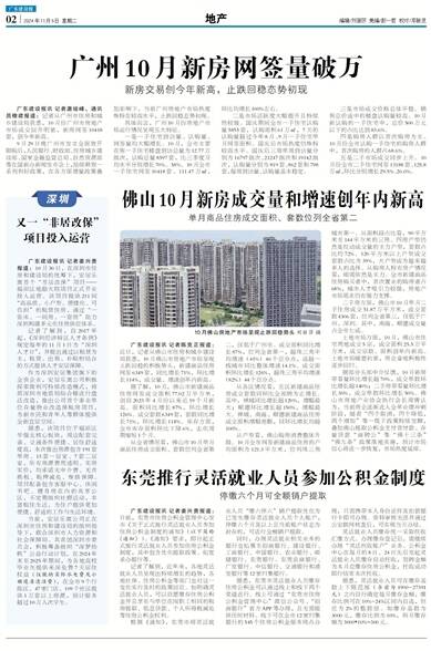 广东建设报讯 记者唐培峰、通讯员穗建报道:记者从广州市住房和城乡建设局获悉,10月份广州市房地产市场成交回升明显,新房网签10418套,创今年新高。 9月29日晚广州市