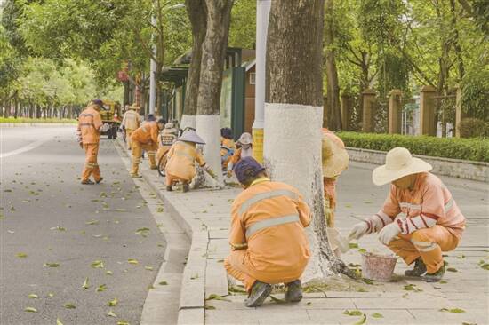 广东建设报讯 记者陈小珊,通讯员全碧芳、李晓东、杜剑锋报道:根据气象部门预测,本月18日前后,广州可能受到中等强度冷空气影响。面对即将到来的降温天气,白云区城市管理和综合执法局近期组织绿化养护工人,对辖内4.3万株行道树进行涂白作业,给树木提前穿上了“防寒衣”,以增强树木抗寒、防冻、防虫能力。 11月14日,白云街头的云城东路、齐富路、空港大道等路段,两旁的行道树都已穿上1.2米高的“防寒衣”,涂白后的树干整齐划一。据了解,这是白云区城管局实施的一年一度冬季树木养护管理重要措施,旨在为树木添“衣”保暖,同时防虫害,守护树木安全过冬。 “白色是害虫讨厌的颜色,涂白后可以杀灭树干的虫卵,预防害虫从土壤爬上树干越冬,从而实现对树木保暖和防虫害等多重保护。”白云区城管局绿管中心园林绿化工程师张智林介绍说,行道树涂白后,树干形成了一层保护层,白天反射阳光,夜晚防止热量流失,使树木不会因为昼夜温差大而造成开裂和冻伤。涂白剂里的杀虫杀菌成分,可以杀灭寄宿在树干裂缝或者树皮底下的虫卵和病菌,这样可以预防明年病虫害暴发。此外,在夜晚涂白剂还可以反射光线,提高夜间行车的安全性。 据了解,自11月10日开始,白云区城管局组织区绿管中心和各绿化社会化管养单位,集中力量对包括黄葛树、宫粉紫荆、红花风铃木等在内的全区4.3万余株行道树进行涂白。这些乔木主要分布在白云新城周边道路、105国道、106国道、白云五线、石井大道等43条市政道路,目前完成率约75%,预计11月底将全部完成。