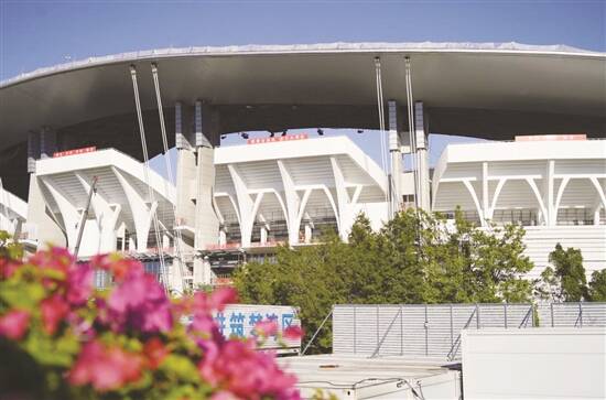 广东奥林匹克体育中心作为十五运会比赛场馆之一,正在进行升级改造。 (广州市城管局供图) |