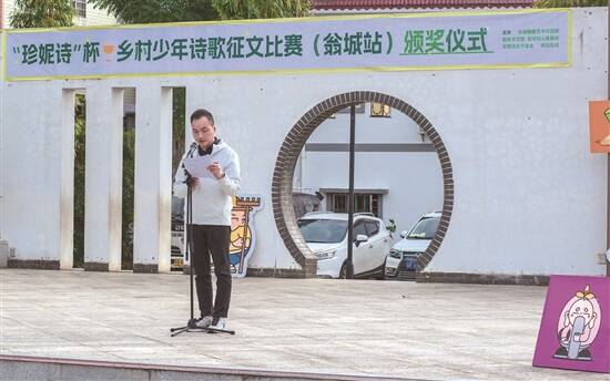 珍妮诗首席执行官麦智荣在“珍妮诗”杯乡村少年诗歌征文比赛(翁城站)颁奖仪式上致辞 |
