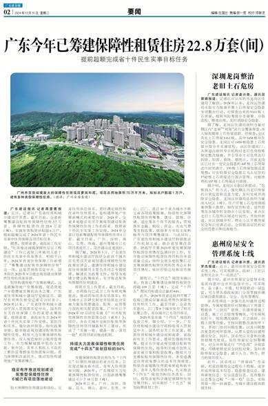 广东今年已筹建保障性租赁住房22.8万套(间)