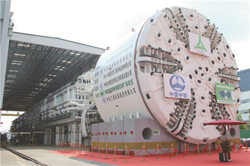 佛莞城际铁路:3标狮子洋隧道施工的超大直径泥水平衡盾构机“狮子洋号”(图源:直播粤港澳) |