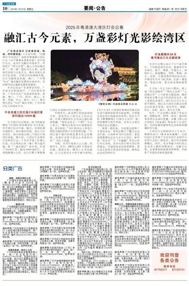 广东建设报讯 记者唐培峰、陈诚、钟梓骥报道:1月22日晚,“光耀神州 华彩湾区”2025年粤港澳大湾区灯会(以下简称大湾区灯会)举行亮灯仪式。此次灯会融合中国春节、传统彩灯“两大非遗”,融入大湾