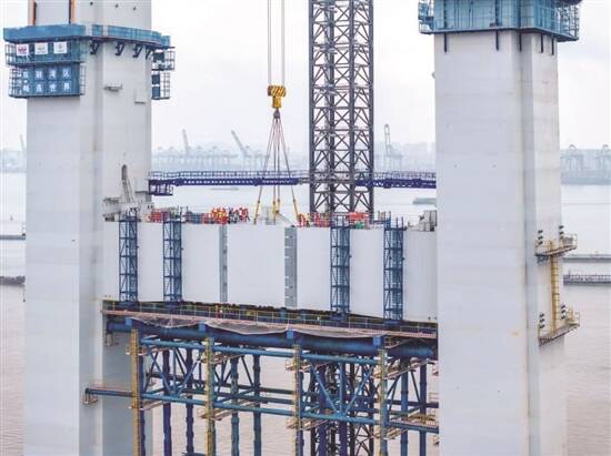 广东建设报讯 记者陈诚,通讯员粤交集宣、岳路建报道:3月14日,记者从广东省交通集团获悉,随着最后一个节段精准嵌入,世界最高双层悬索桥——狮子洋大桥顺利完成首道钢横梁架设。该桥建成后将创造“主跨跨径、主塔塔高、锚碇基础、主缆规模、车道数量”五项世界第一,成为粤港澳大湾区又一标志性工程。 狮子洋通道是连接珠江东西两岸的超大型跨海复合通道,起于广州南沙大岗镇,终于东莞虎门镇,全长约35公里。作为项目核心控制性工程,狮子洋大桥采用“一跨过江”双层钢桁悬索桥方案,主跨达2180米,主塔高342米(相当于110层楼高),是目前全球最高的双层悬索桥主塔。全桥共需安装6道钢横梁,首道横梁重超1200吨,由7个节段组成,其成功架设标志着主塔建设进入关键阶段。 针对超20万吨的巨大压力,建设团队创新采用“承压板+预应力钢束”贴合式连接工艺,突破传统锚固方式的局限性。在钢横梁制造环节,面对100平方米机加工面、6米以上加工高度的严苛要求,通过数字化焊接变形控制技术,实现磨光顶紧100%合格,平面度误差控制在0.5毫米/平方米以内。吊装过程中,运用塔吊可视化系统和三向千斤顶微调技术,在仅2厘米的合龙口间隙内完成200吨级节段的毫米级精准对接。 作为粤港澳大湾区基础设施互联互通的重点工程,狮子洋通道建成后将大幅缩短珠江口东西两岸通行时间,对促进区域经济一体化、支撑“一带一路”建设具有重要战略意义。目前,狮子洋通道主桥狮子洋大桥主塔建设正有序推进中,锚碇已完成填芯,正进行顶板及锚固系统安装施工,引桥工程也逐步转入上部结构全面施工阶段。“今年将实现狮子洋大桥主塔塔高突破200米、锚碇完成锚体施工70%的建设目标。”狮子洋通道项目相关负责人表示。