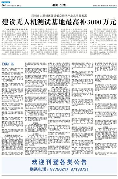 遗失声明 广州增城区富祥士多店遗失公章一枚,现声明作废。 遗失声明 广州玛迈商贸有限公司遗失合同专用章一枚,现声明作废。 遗失声明 湛江市恒汇建设有限公司(统一社会信用代码91440825MA56A43H5D)遗失公章一枚,现声明作废。 遗失声明 广州速达快递代理有限公司遗失公章、财务专用章各一枚,现声明作废。 遗失声明 广东抱朴轩文化有限公司遗失公章、财务专用章、合同专用章、发票专用章、法人章(张平香)各一枚,现声明作废。 遗失声明 广州市白云区竹料廖慧玲肉档遗失营业执照正、副本,统一社会信用代码92440101MA9XAD230Y,注册号440111600292532,声明作废。 遗失声明 广州晞妍电子商务有限公司遗失公章一枚,现声明作废。 遗失声明 广州行威实业有限公司遗失公章壹枚,现声明作废。 遗失声明 广州云锦公寓管理有限公司遗失发票专用章一枚,现声明作废。 遗失声明 广东独家高新材料有限公司遗失公章一枚,现声明作废。 遗失声明 广州市荔湾区豪哥美食店遗失营业执照正本,统一社会信用代码92440101MA5AFG14XN,编号S032022001699,现声明作废。 遗失声明 广州市康美生活家居有限公司遗失旧法人章(卢超基)一枚,现声明作废。 清算组备案、债权人公告 广州市信裕皮具有限公司,统一社会信用代码:9144010105063938XP,经股东决定终止经营,现已成立清算组进行清算。清算组成员:茹法亮,清算组负责人:茹法亮。请相关债权人自本公告见报之日起45天内向本公司清算组申报债权,逾期不申报,视为放弃权利。清算结束后,本公司将向公司登记主管机关申请注销登记。特此公告。 遗失声明 广州市惠佳房地产代理有限公司遗失公章一枚,现声明作废。 遗失声明 广州恒锋信息科技有限公司遗失财务专用章一枚,现声明作废。 遗失声明 广州众祥源再生资源有限公司遗失公章、财务专用章、发票专用章、合同专用章、法人章(魏剑祥)各一枚,现声明作废。 遗失声明 广州市程欧装饰工程有限公司遗失公章、财务专用章、法人章(江志丹)各一枚,现声明作废。 遗失声明 中山市新茂商文化产业有限责任公司遗失电子营业执照,统一社会信用代码91442000MA538MMY0D,编号10016090053778,现声明作废。 遗失声明 广州市花都区花东金丽服装店遗失营业执照正、副本,统一社会信用代码92440101MA59TJCP5F,注册号440121601083146,现声明作废。 遗失声明 广州市增城区金海岸游艺娱乐有限责任公司遗失娱乐经营许可证正、副本,编号:440183160157,现声明作废。 遗失声明 广州市黄埔区燕双悦保健食品经营店遗失食品经营许可证正、副本,许可证编号:JY24401120306310,现声明作废。 遗失声明 广州金源包材有限公司遗失营业执照副本,统一社会信用代码:91440101MA9UNC7M3T,编号:S1112020060221,声明作废。 遗失声明 广州芳赐贸易有限公司遗失公章、财务专用章、法人章(李婷婷)各一枚,现声明作废。 撤销公告 广州大粤康食品有限公司撤销2015年04月01日清算组备案,备案号(穗)登记内备字[2015]第11201504010252号,并解散清算组,该公司继续经营,一致同意原章程有效,继续按原章程执行。特此么告! 会议通知 广州济帆威尔科技有限公司(统一社会信用代码:91440101MA9YAY597C),于2025年4月15日在广州市白云区永平街永泰致和街七巷22号之一3楼B517室召开注销公司的会议,现通知全体股东杨华邦、丁祖学参加本次注销公司的会议,特此公告。 遗失声明 广州市蓝邵通信发展有限公司( 统一社会信用代码 91440101MA5AN5FN8H)遗失财务专用章、私章各一枚,遗失银行开户许可证,核准号 J5810149161101,现声明作废。 减资公告 广州唯派户外用品有限公司(统一社会信用代码 914401133314293385)经股东大会决定将原注册资本由100万元减至10万元,请相关债权人自公告之日起45日内到我司办理相关手续。逾期不申报,视为放弃权利,本公司将向公司登记机关申请变更登记。 减资公告 广州科瑞特科技有限公司(统一社会信用代码 91440101MA9W56KG6Y)经股东大会决定将原注册资本由1000万元减至10万元,请相关债权人自公告之日起45日内到我司办理相关手续。逾期不申报,视为放弃权利,本公司将向公司登记机关申请变更登记。 解散、清算及债权人公告 广东省正义阳光救助基金会( 统一社会信用代码 53440000053750032U)) 理事会决议解散,现已成立清算组进行清算,清算组成员 张荣、林薇、吴载波、杨爱军、王晓、龙洋、周琨,清算组负责人 冷炎坤,请相关债权人自本公告见报之日起45 天内向本公司清算组申报债权债务。清算结束后,本公司将向公司登记主管机关广东省社会组织管理局申请注销登记,特此公告。 遗失声明 广州市云屏飞讯科技有限公司遗失公章、财务专用章、法人私章、合同专用章各一枚,现声明作废。 遗失声明 广东中交城市投资发展有限公司( 统一社会信用代码 914401153211060685)遗失合同专用章一枚,现声明作废。 遗失声明 湛江市永誉房屋租赁管理有限公司遗失公章一枚,现声明作废。 遗失声明 广州艾思美甲有限公司( 统一社会信用代码 91440111MAC78UQ148)遗失公章一枚,现声明作废。 遗失声明 汕尾市启基置业有限公司遗失公章一枚,现声明作废。 遗失声明 广州一号服装贸易有限公司( 统一社会信用代码 91440101MA5CPHCG7T)遗失财务专用章,法人章(宗羽)、公章各一枚,遗失营业执照副本,现声明作废。 遗失声明 广州鼎志装饰画有限公司遗失财务专用章、发票专