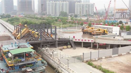 建筑垃圾运输船舶正在临时装卸点装载工程渣土(广州市城管局供图) |