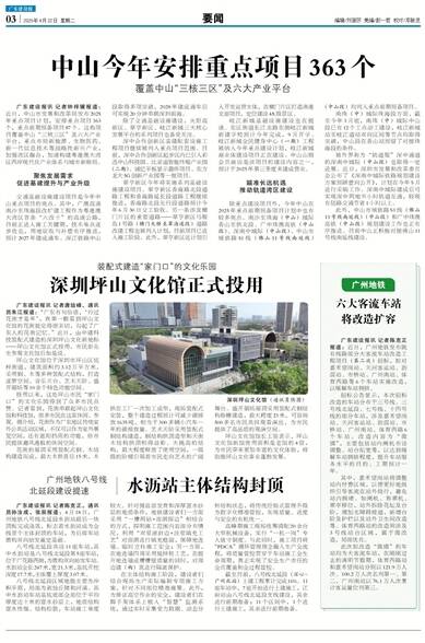 广东建设报讯 记者钟梓骥报道:近日,中山市发展和改革局发布2025年重点项目计划,安排重点项目363个,重点前期预备项目87个。这些项目覆盖中山“三核三区”及六大产业平台,重点布