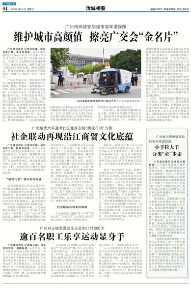 广东建设报讯 记者钟梓骥,通讯员成广聚、漆文欣报道:第137届中国进出口商品交易会(广交会)于4月15日至5月5日在广州市海珠区举办。为做好广交会期间市容环境保障工作,迎接各地客